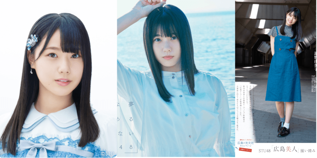 Miyuna is shown to be quite the talented dancer. She has an intense gaze and tends to do best with their stronger songs, like STU48’s 4th single mentioned above, and AKB48’s 28th single, UZA. Click here to see her perform UZA solo at the 2020 STU48 Senbatsu Concert!